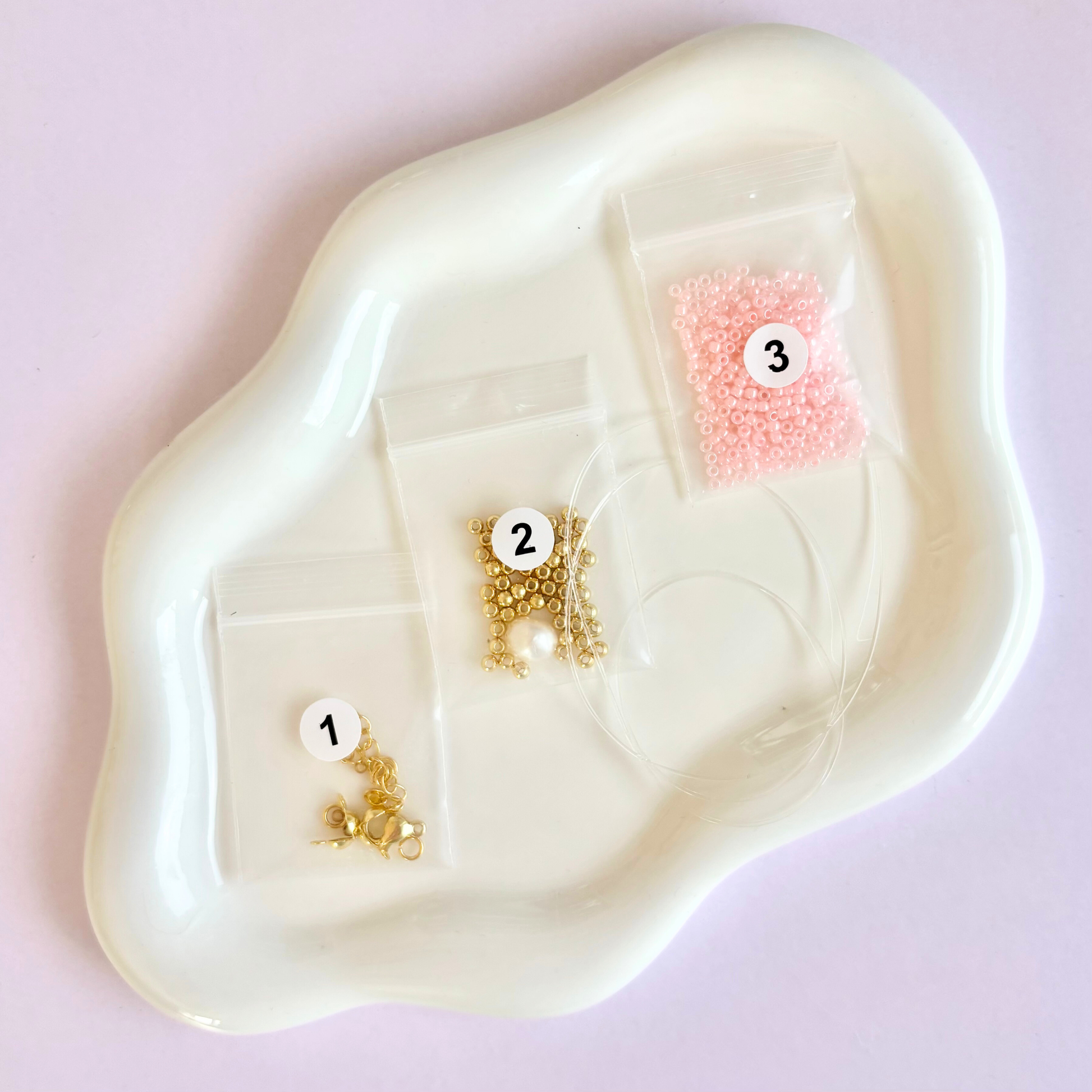 Tout le matériel et les outils dont tu as besoin pour créer ton collier.