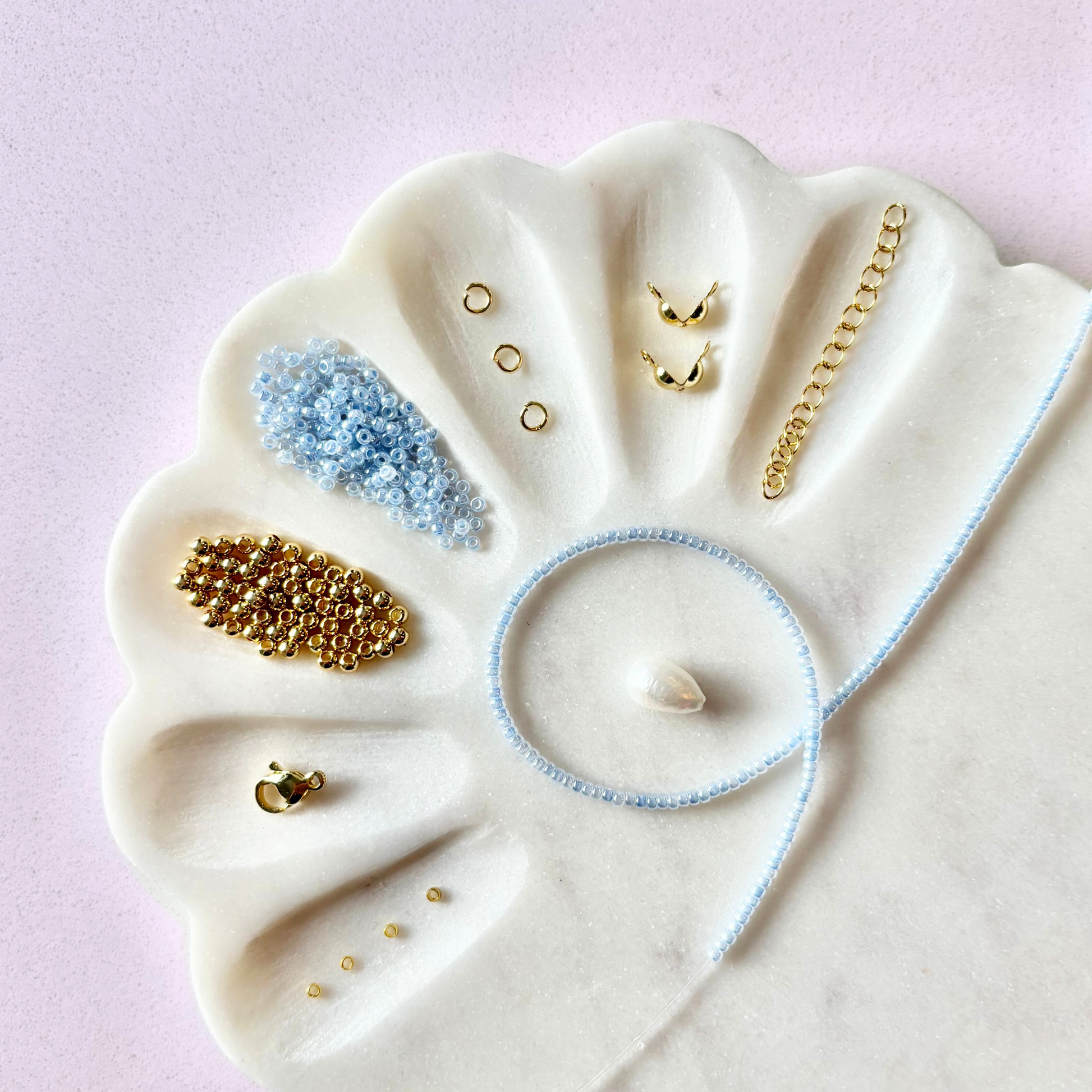 Tout le matériel et les outils dont tu as besoin pour créer ton collier.