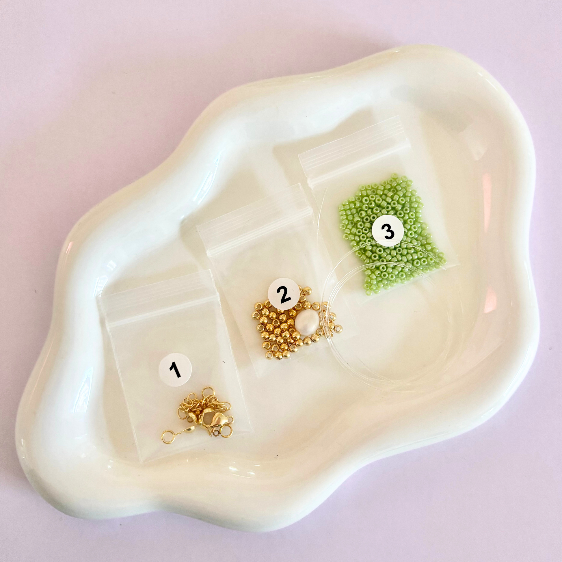 Tout le matériel et les outils dont tu as besoin pour créer ton collier.
