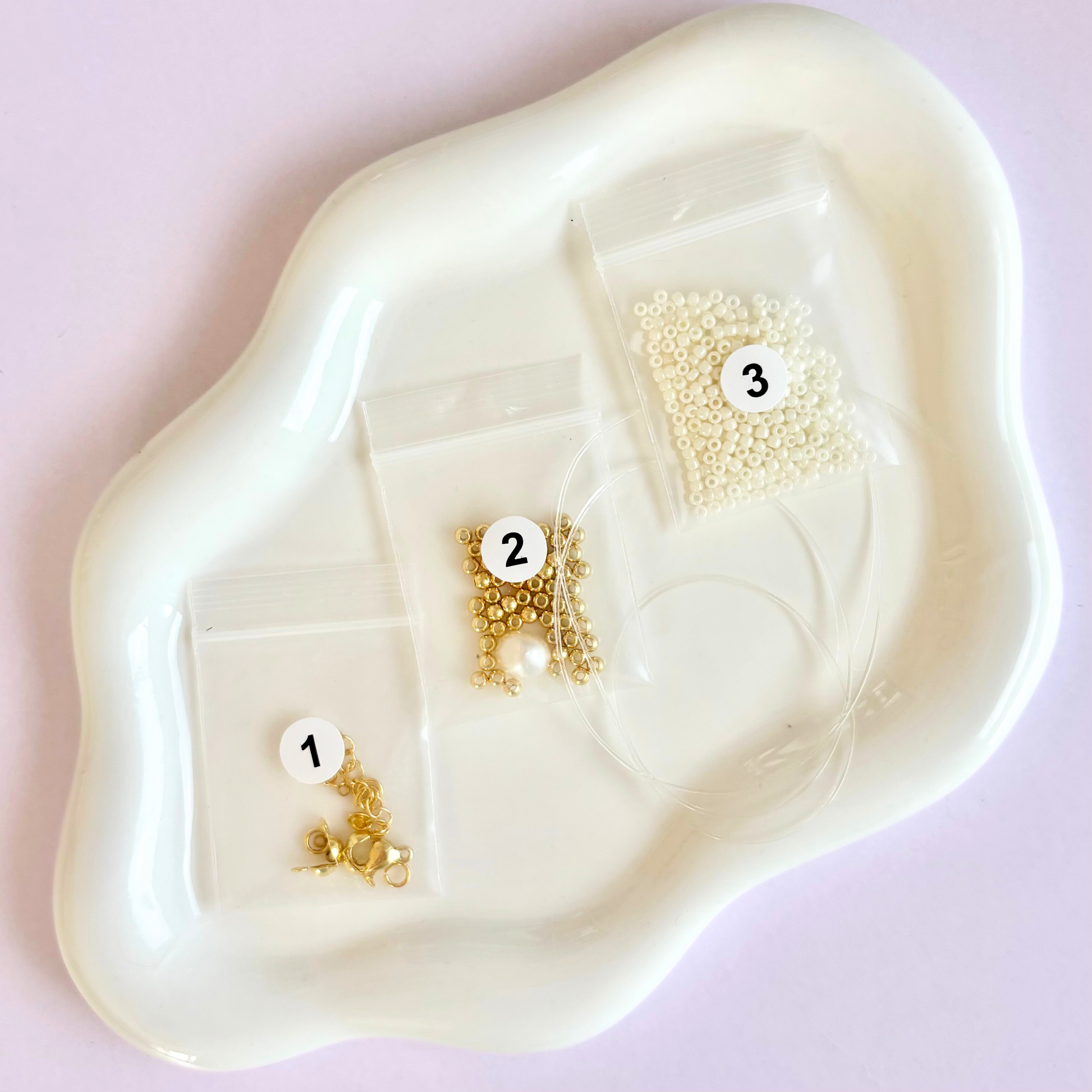 Tout le matériel et les outils dont tu as besoin pour créer ton collier.